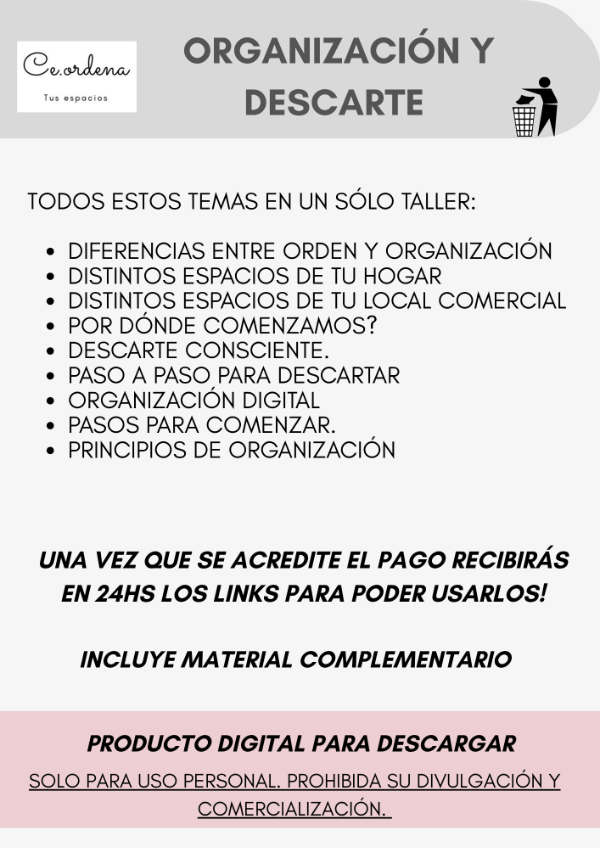 👉 La organización no solo facilita la vida diaria, también aporta claridad mental y productividad. En este taller vas a aprender cómo hacerlo de forma práctica, realista y sostenible.