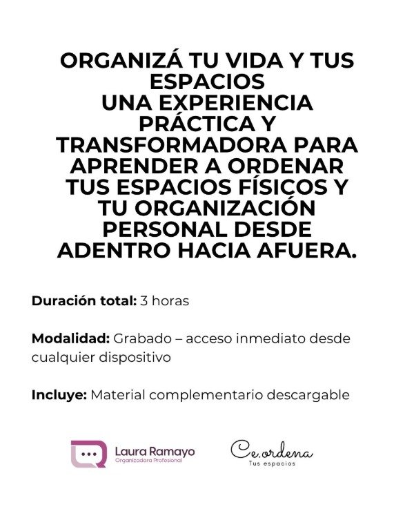 Workshop grabado: “Organizá tu vida y tus espacios” ✨